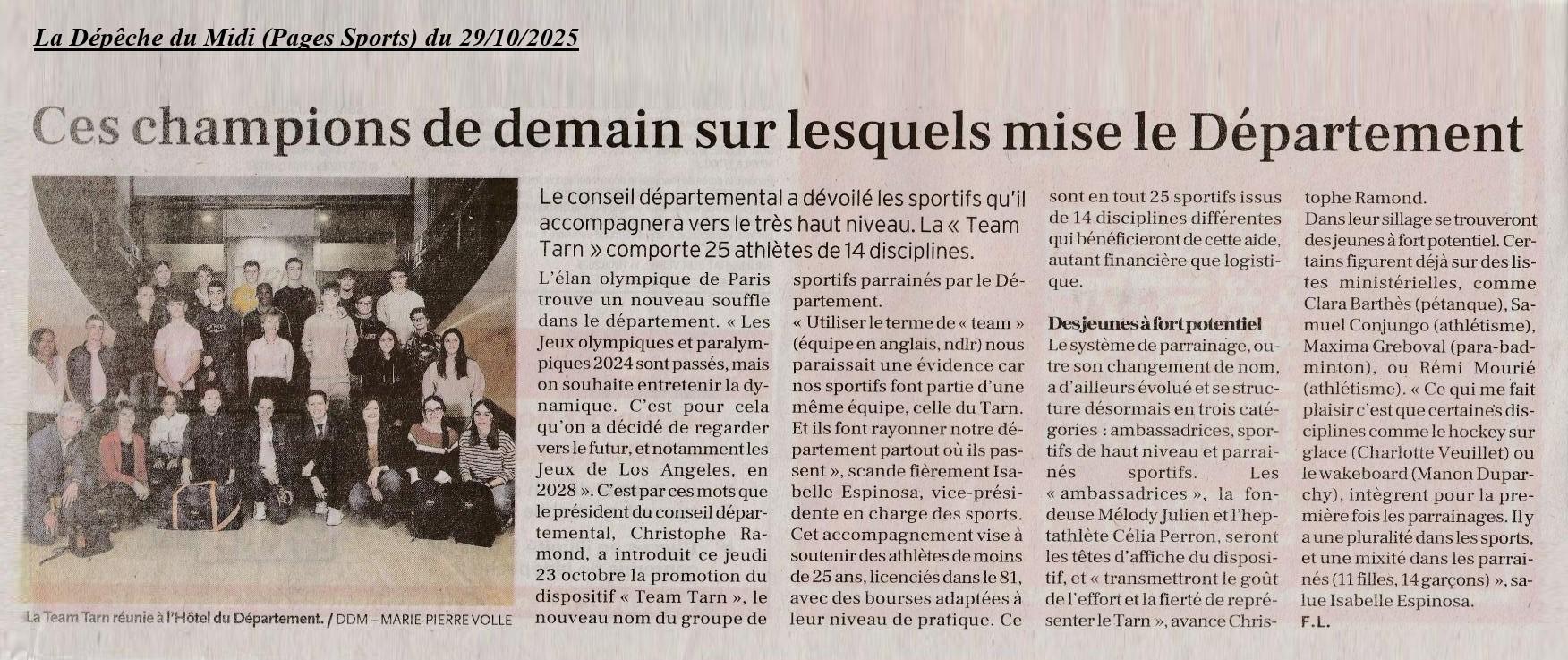 - Article La Dépêche du Midi du 29/10/25 ; Capucine membre de la TEAM TARN