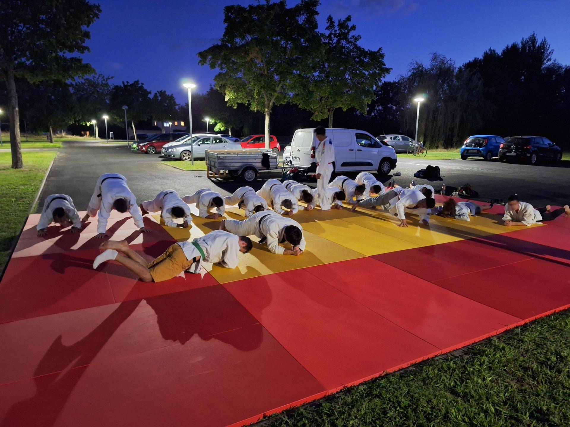 Nous étions près de 25 sur les tatamis pour une séance en plein air d'initiation au judo pour les novices et de rappels des fondamentaux pour les initiés.
